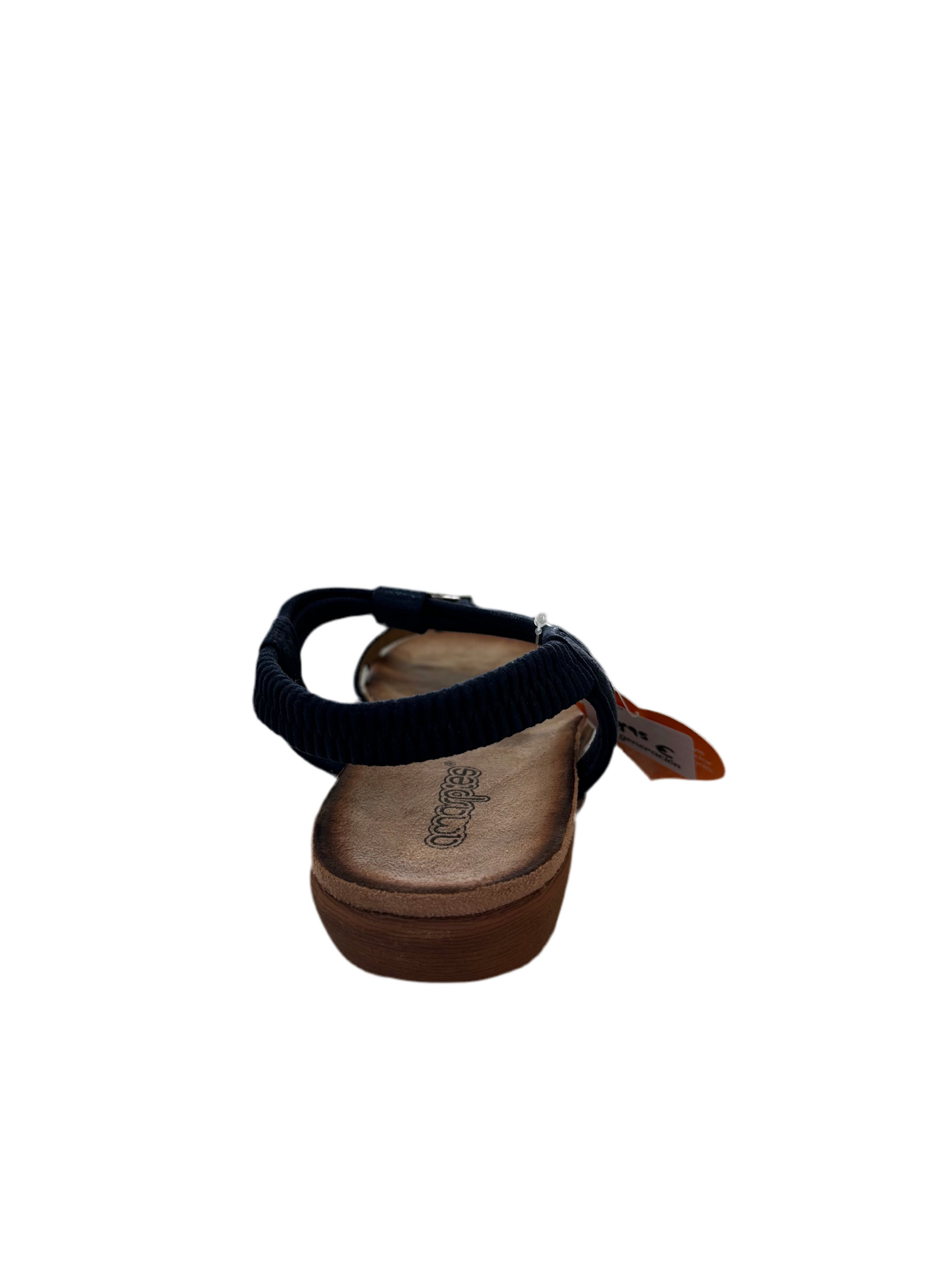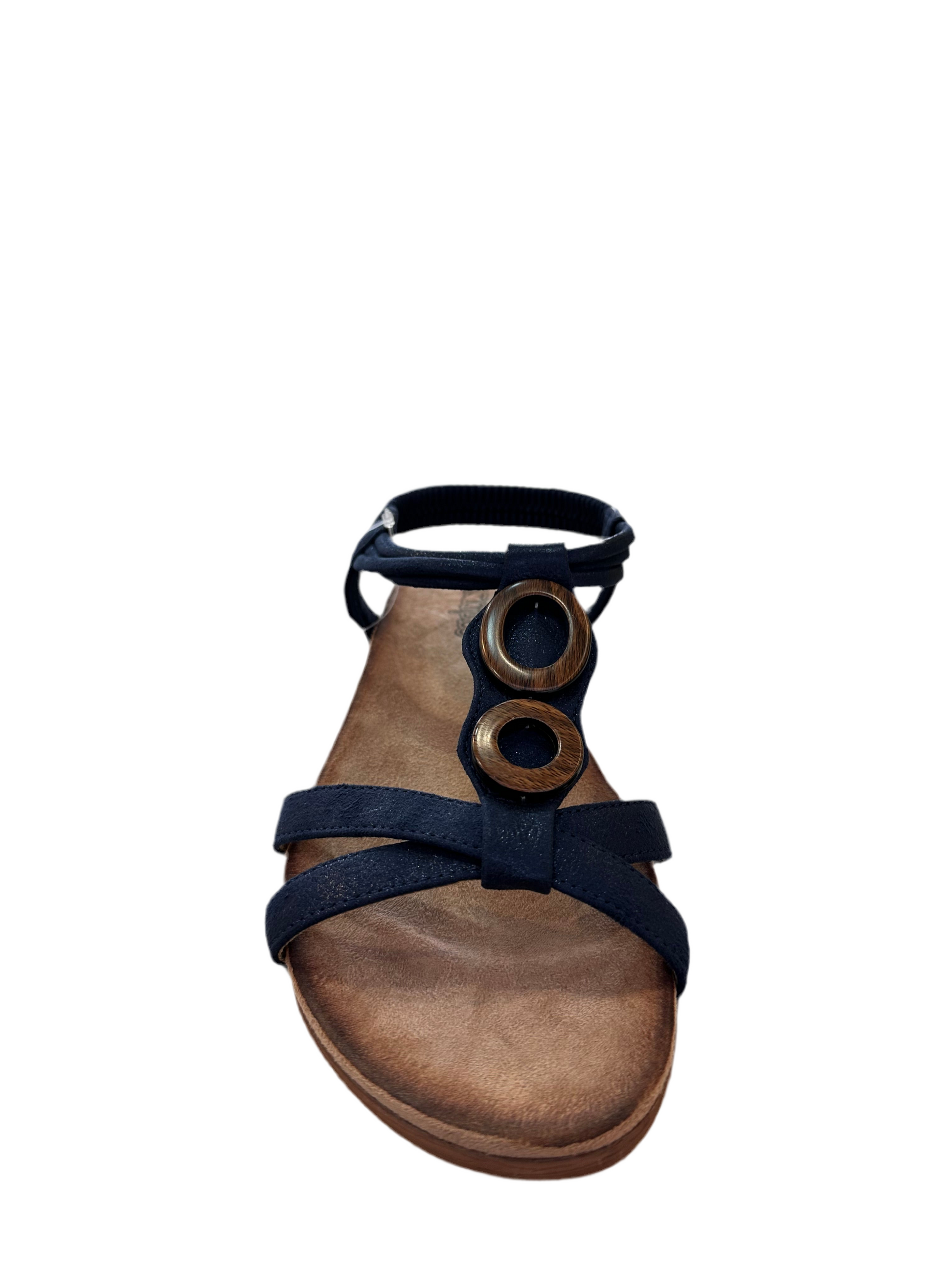 Sandalia amarpies con elásticos y adorno de madera.