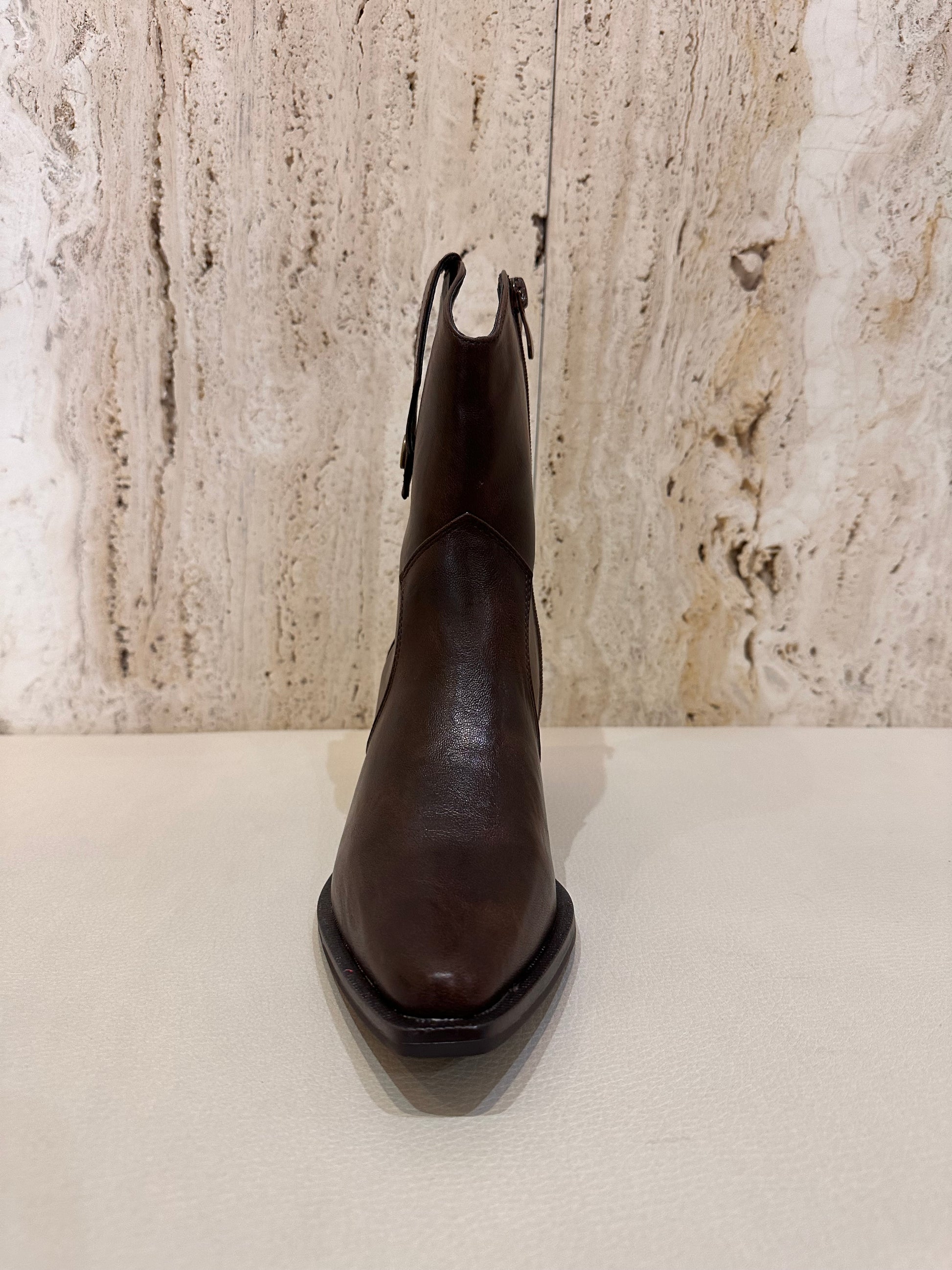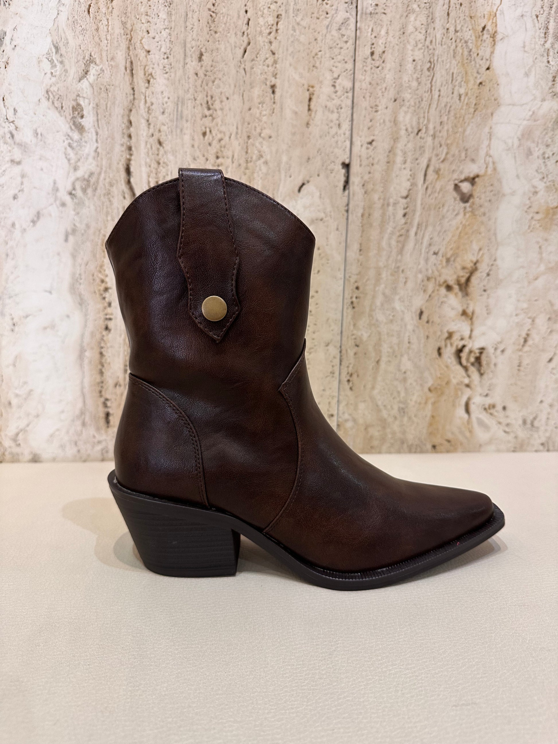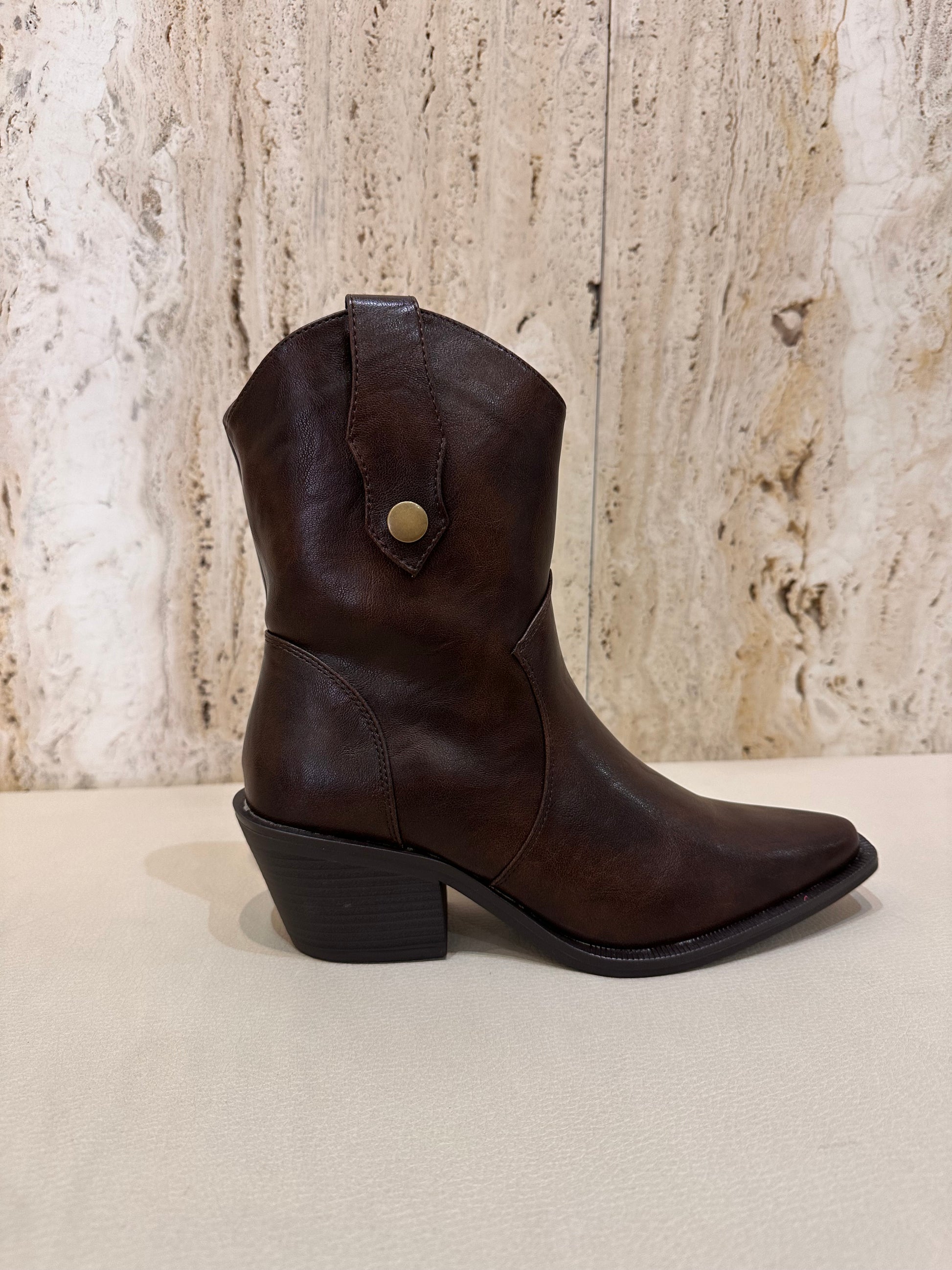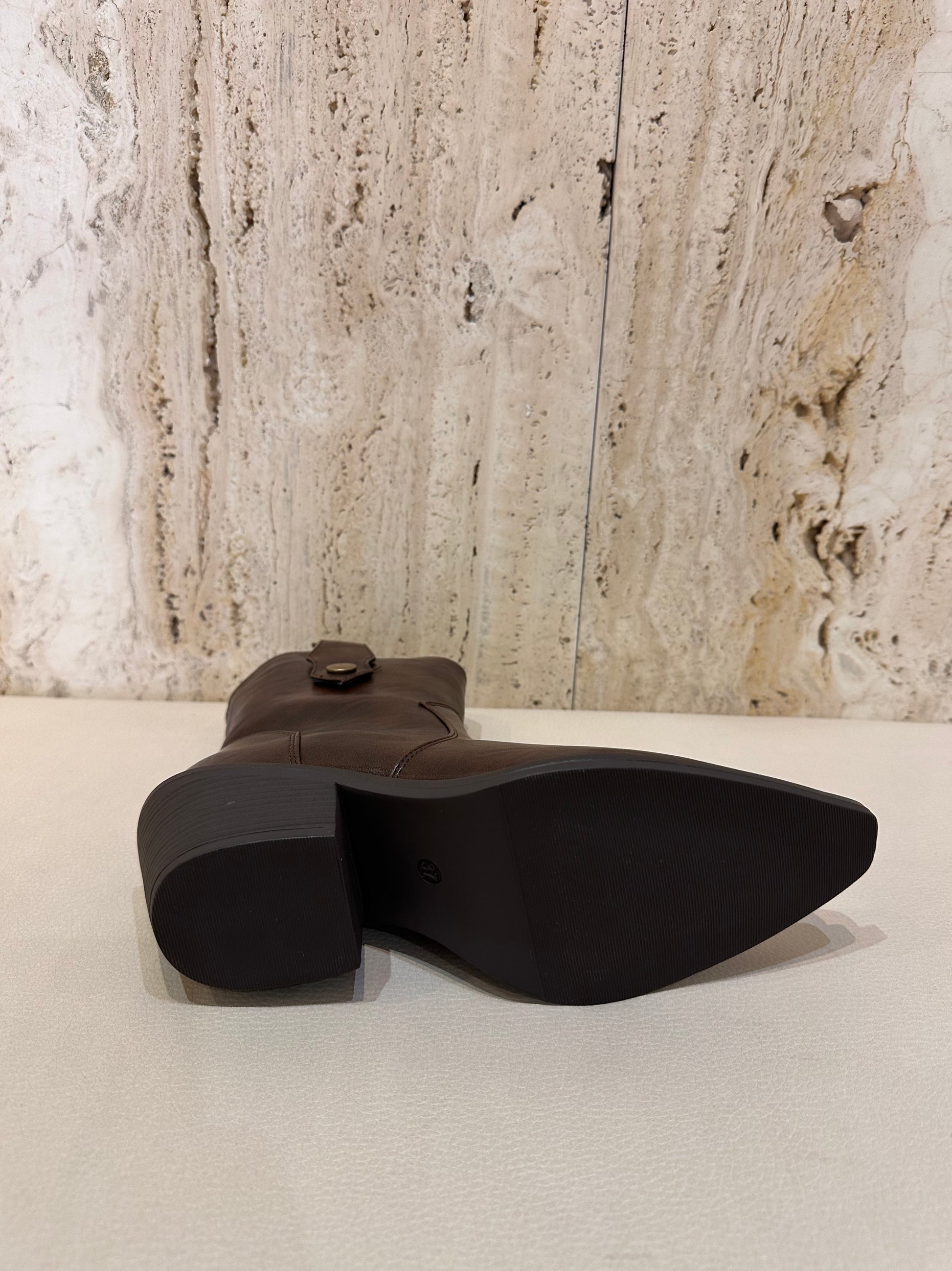 Botín cowboy con dos opciones de puesta con solapa faldón o botín liso en color moka