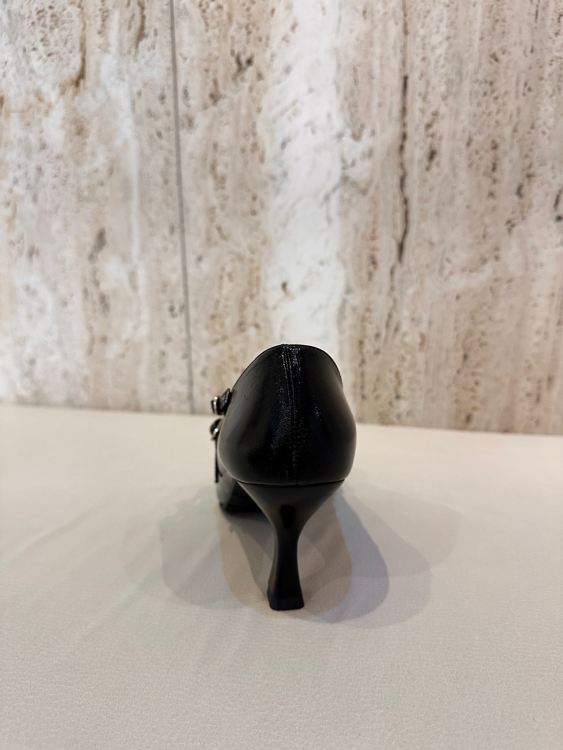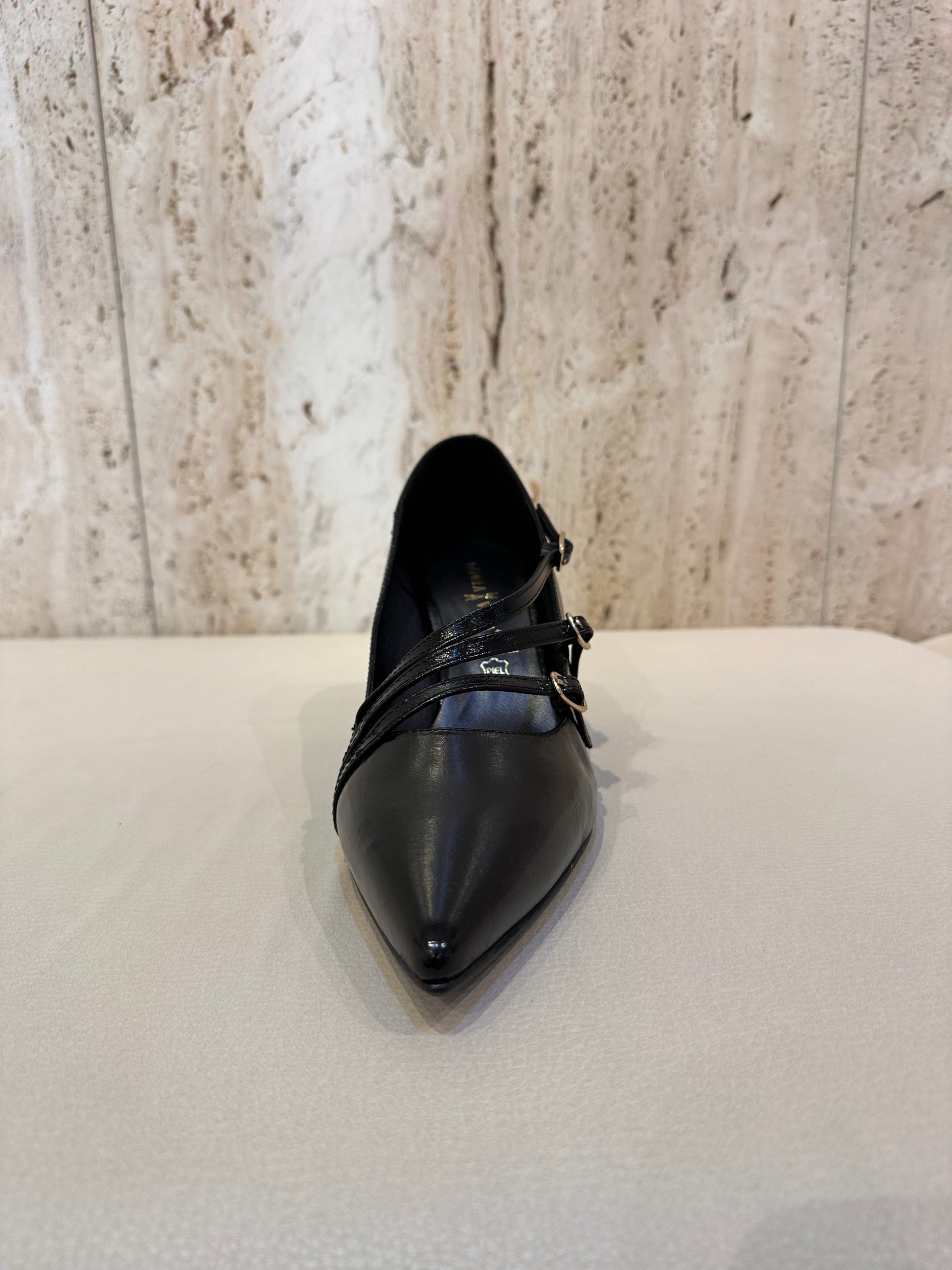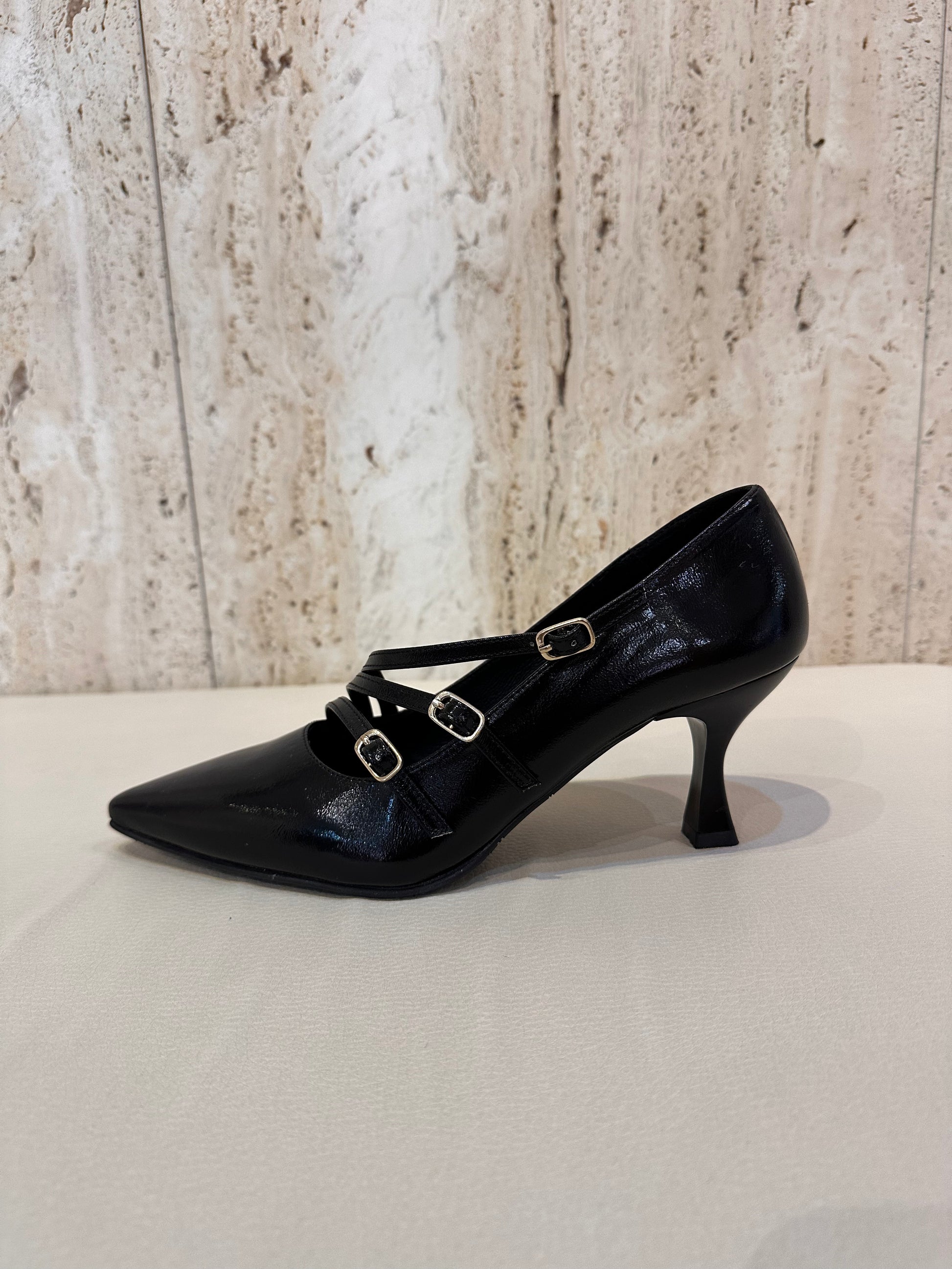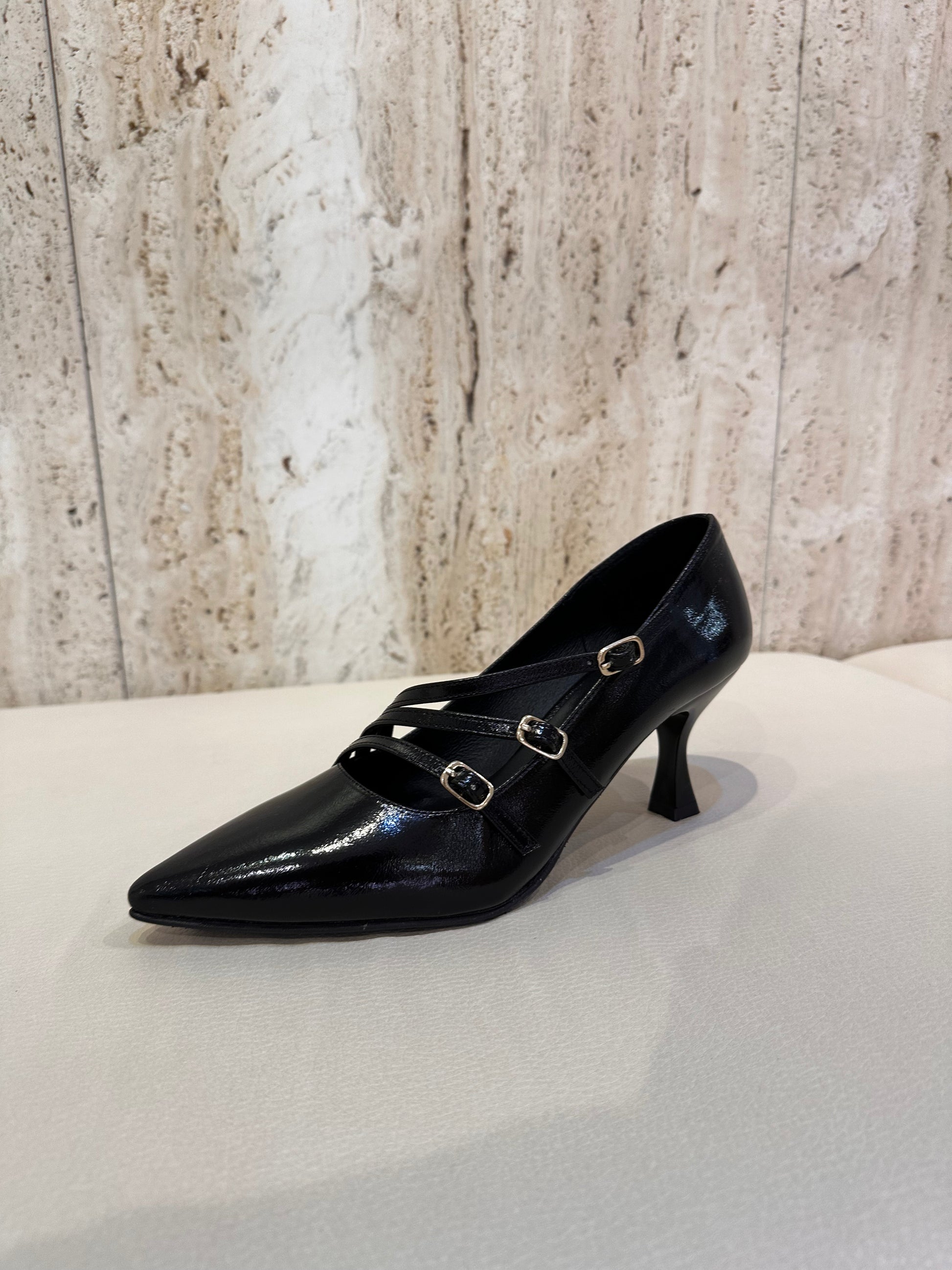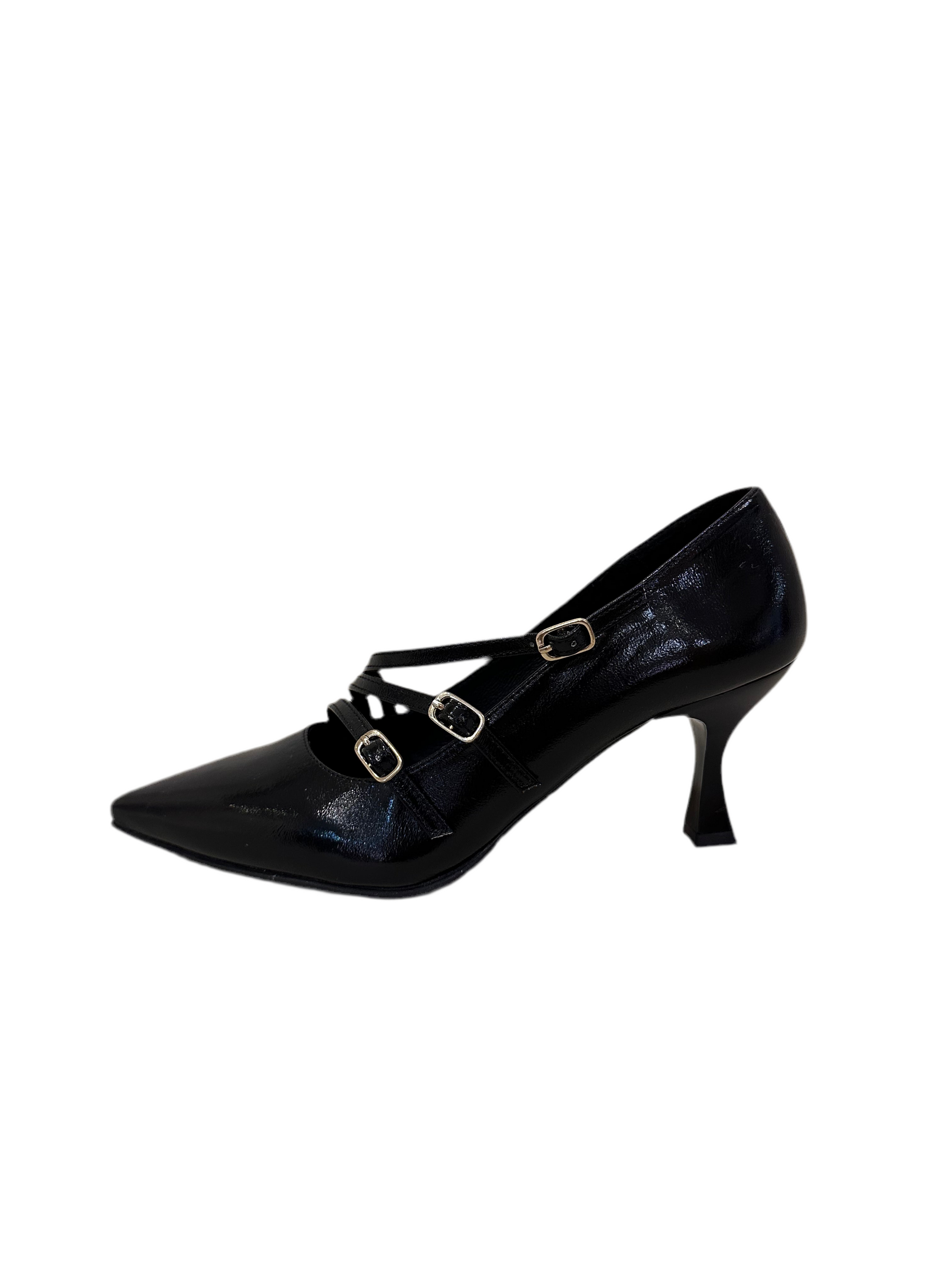 Daniela vega salon 5 con 3 hebillas en color negro charol