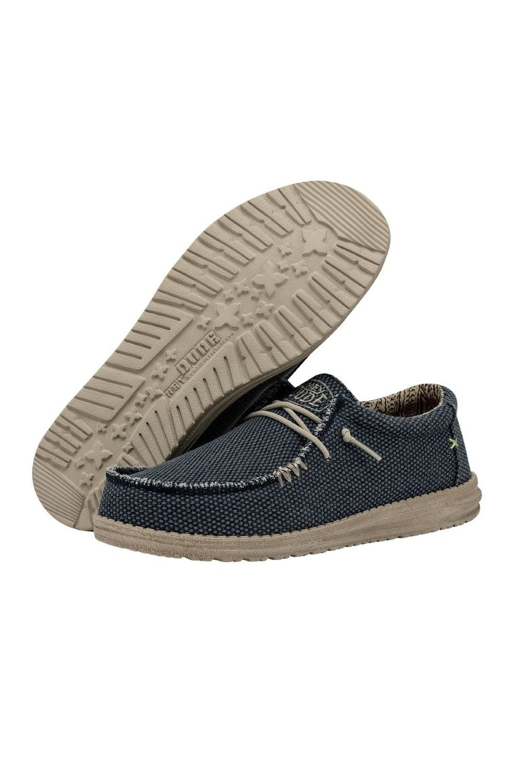 Este mocasín HEY DUDE de estilo clásico con cordones es un zapato extra ligero y transpirable, presentado sobre una suela patentada UltraLIGHT EVA. Sus principales características son: Parte superior y forro de algodón orgánico. Suela ultraligera. Plantillas extraíbles de espuma viscoelástica con un 15% de corcho reciclado que absorben la humedad y son ergonómicas. Sistema Easy-On, que facilita el calzado del zapato. Cordones de algodón orgánico. No contienen productos de origen animal. Lavable a máquina (en frío).