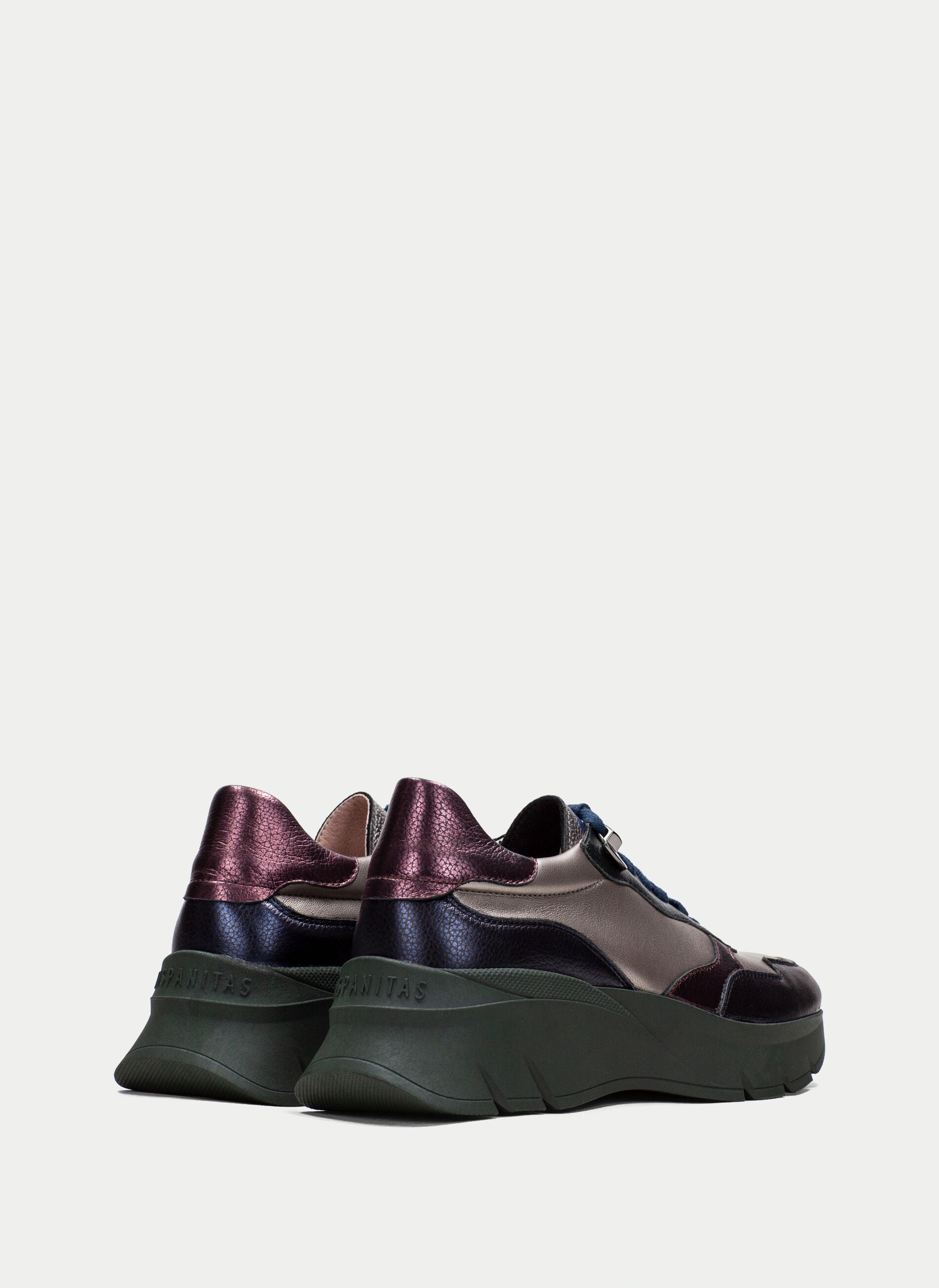 Deportiva con suela volumen de 5 cm, elaborada con una original combinación de materiales formada por piel, tejido de franela y glitter. Cierre de cordones elásticos. Este zapato incorpora la tecnología TRIFLOW, amortigua cada paso gracias a su triple almohadillado. Además, cuenta con plantilla extraíble.