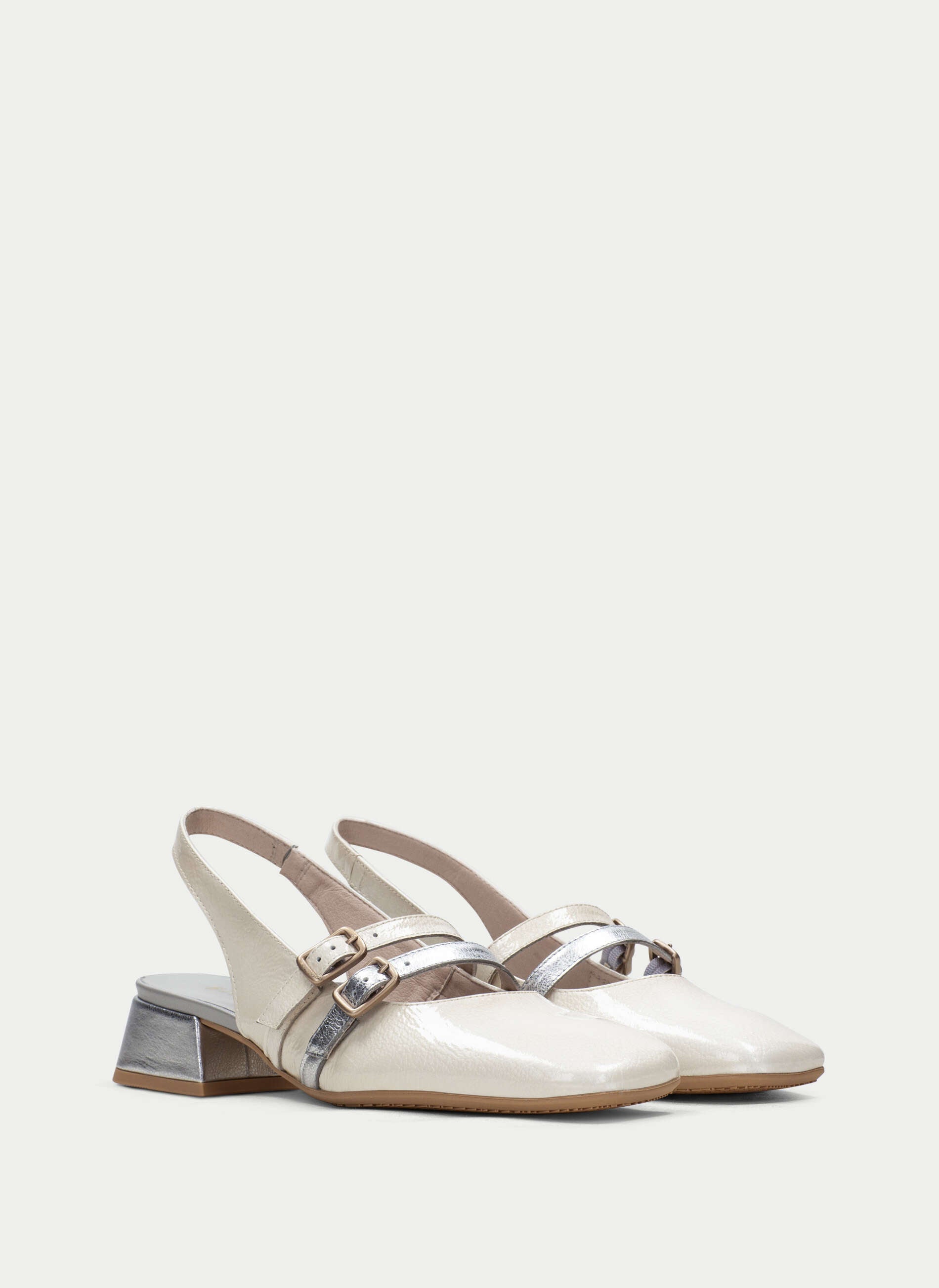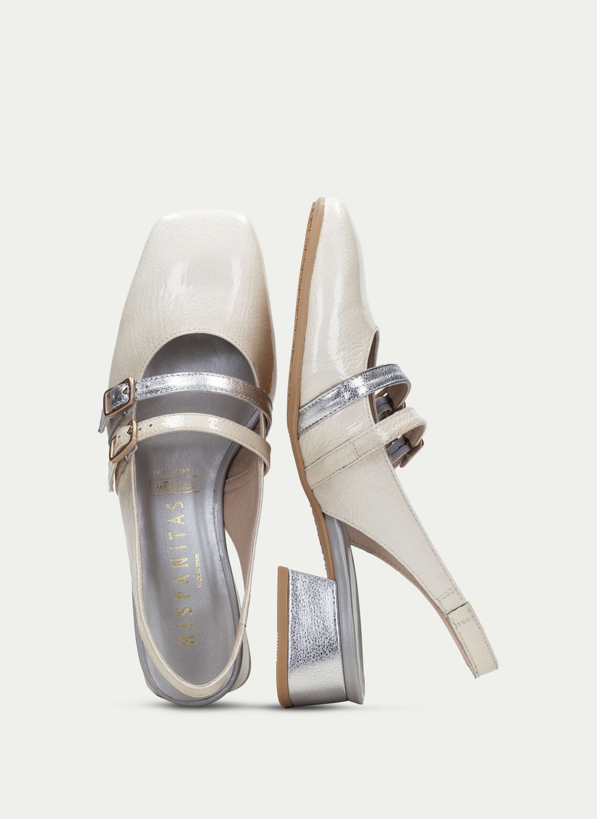 Zapato hispanitas destalonado de piel charol con doble pulsera y hebillas