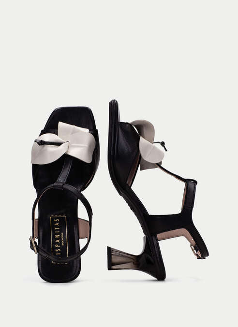 Sandalia Hispanitas elaborada en piel con tacón de 6,5 cm y un diseño especial y muy original gracias al detalle de la flor. Este modelo se convierte en una apuesta cómoda gracias al cierre de hebilla que permite un ajuste perfecto al pie y también al triple almohadillado (Triflow). Una sandalia estilosa gracias al cuidado de los detalles como el tacón traslúcido.