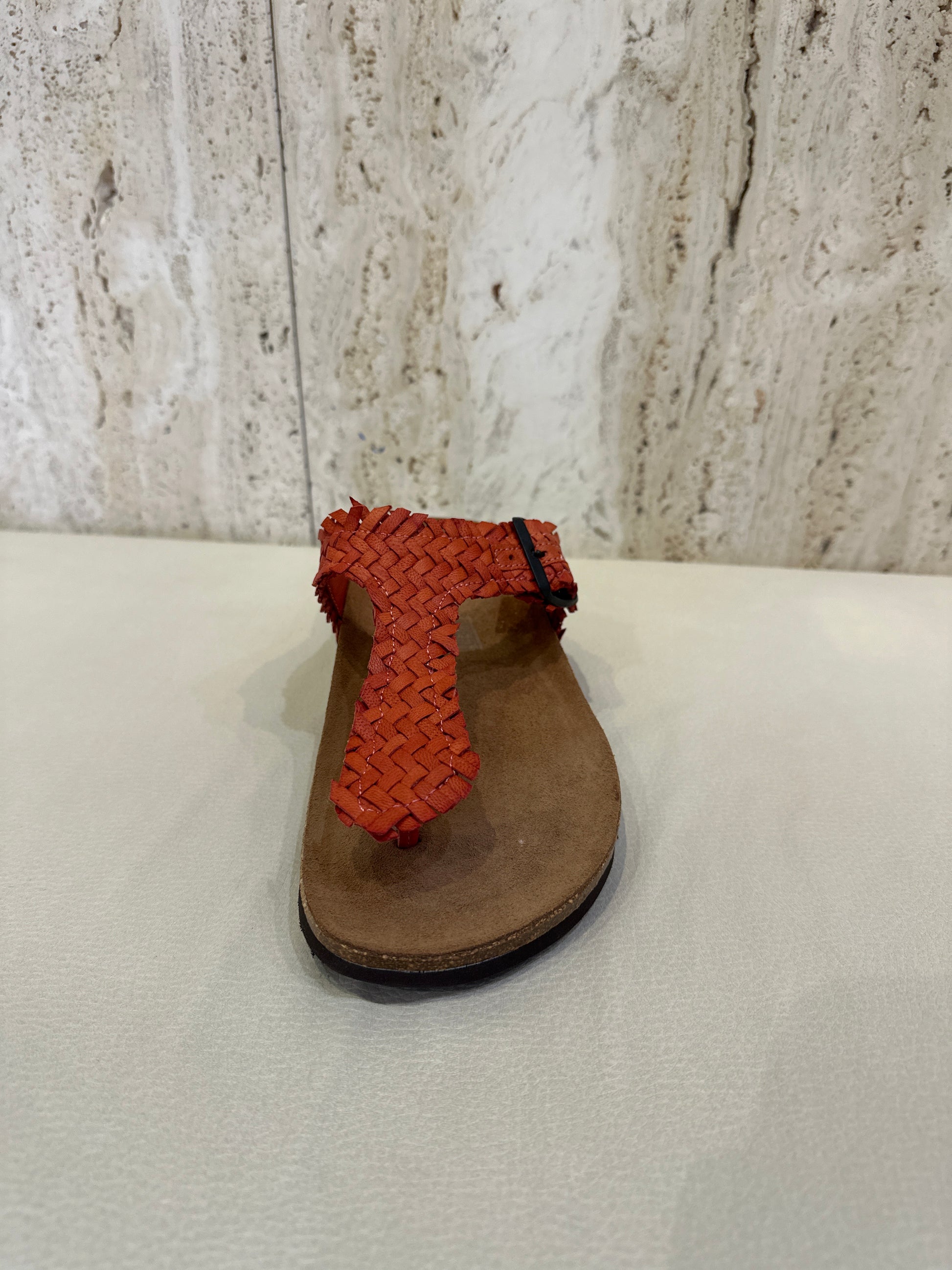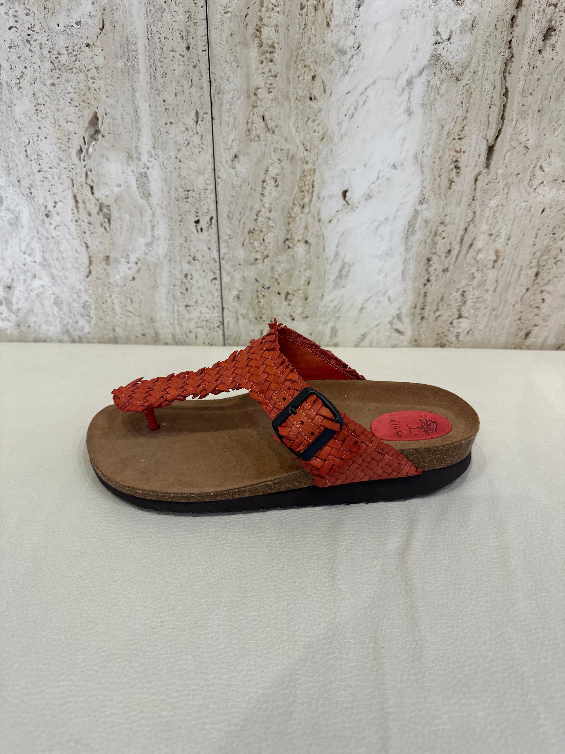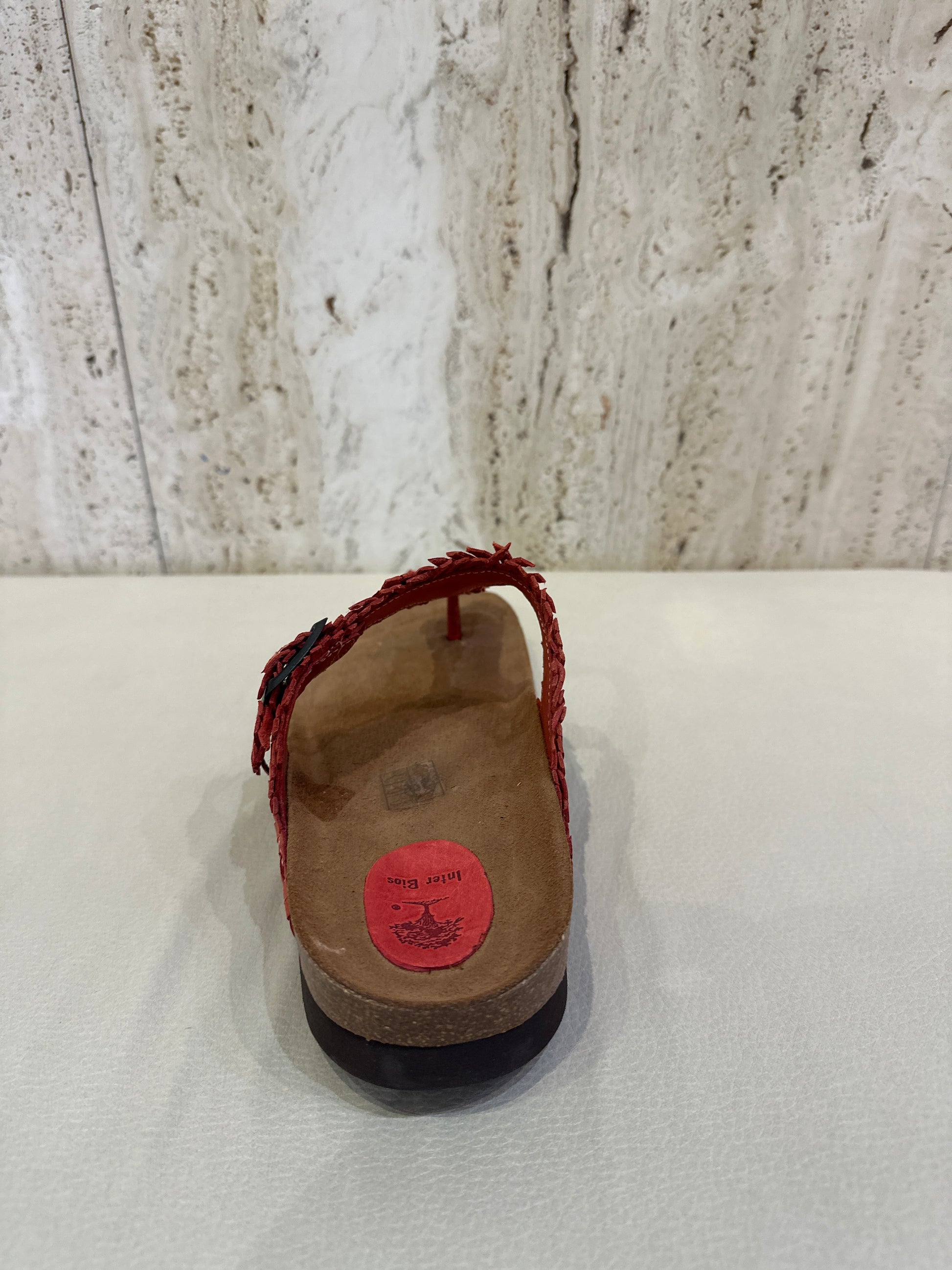 Sandalia esclava de dedo en color rojo y taupe