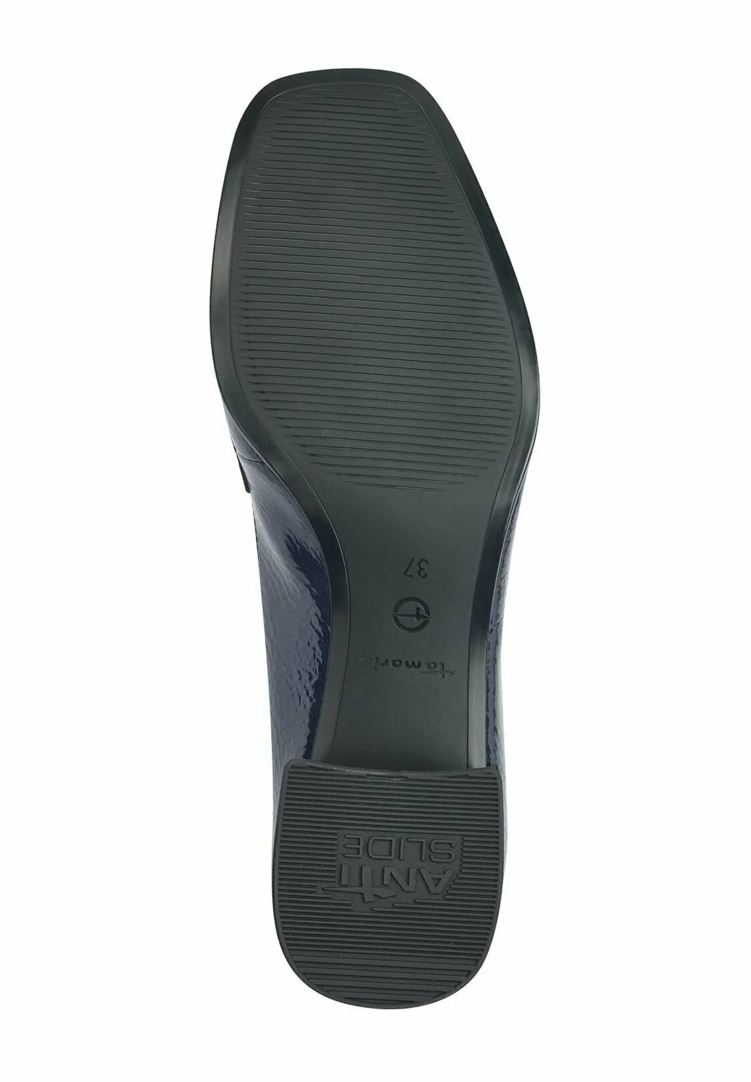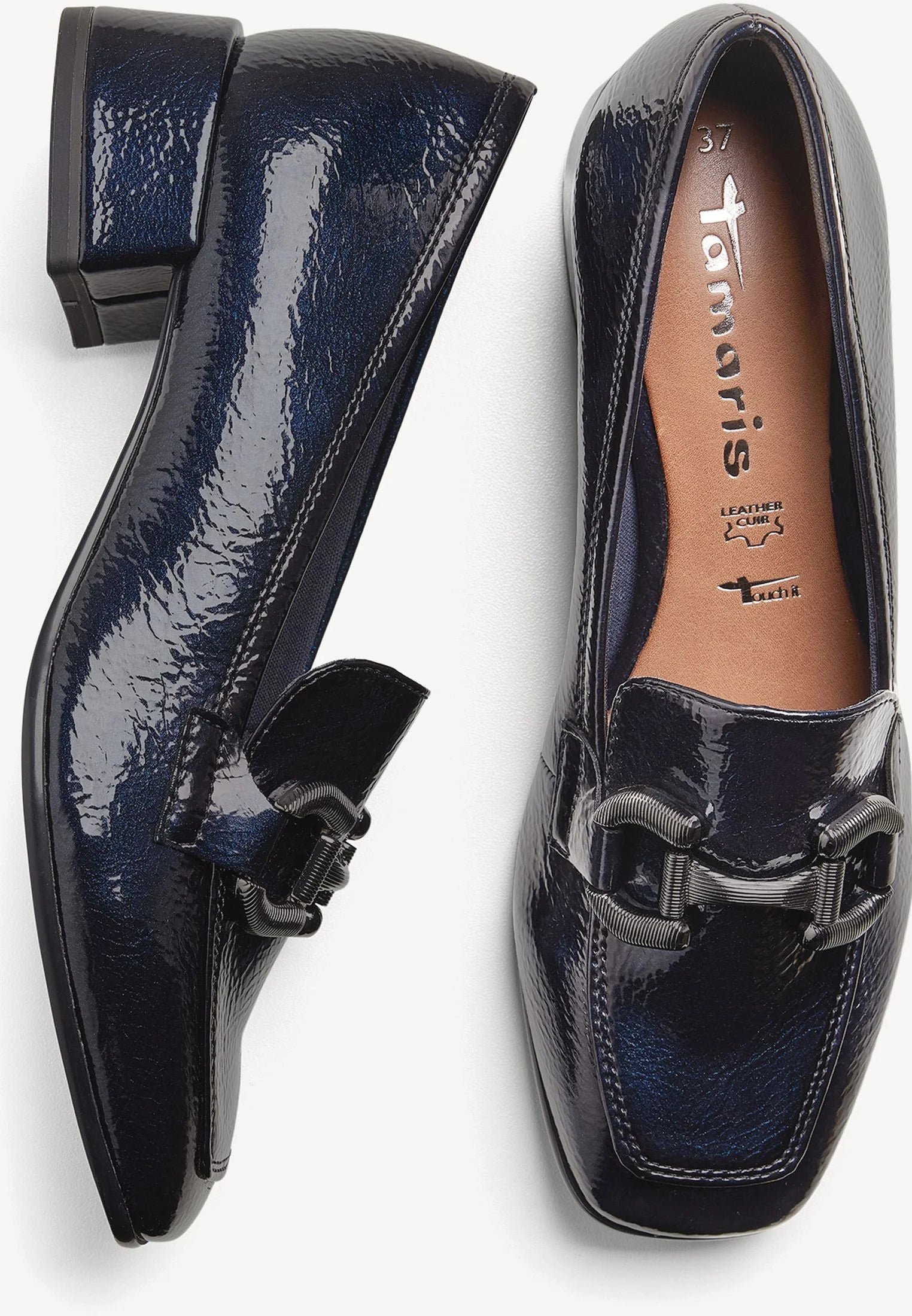 Mocasin con cadena Tamaris en color burdeos y azul marino ambos charol