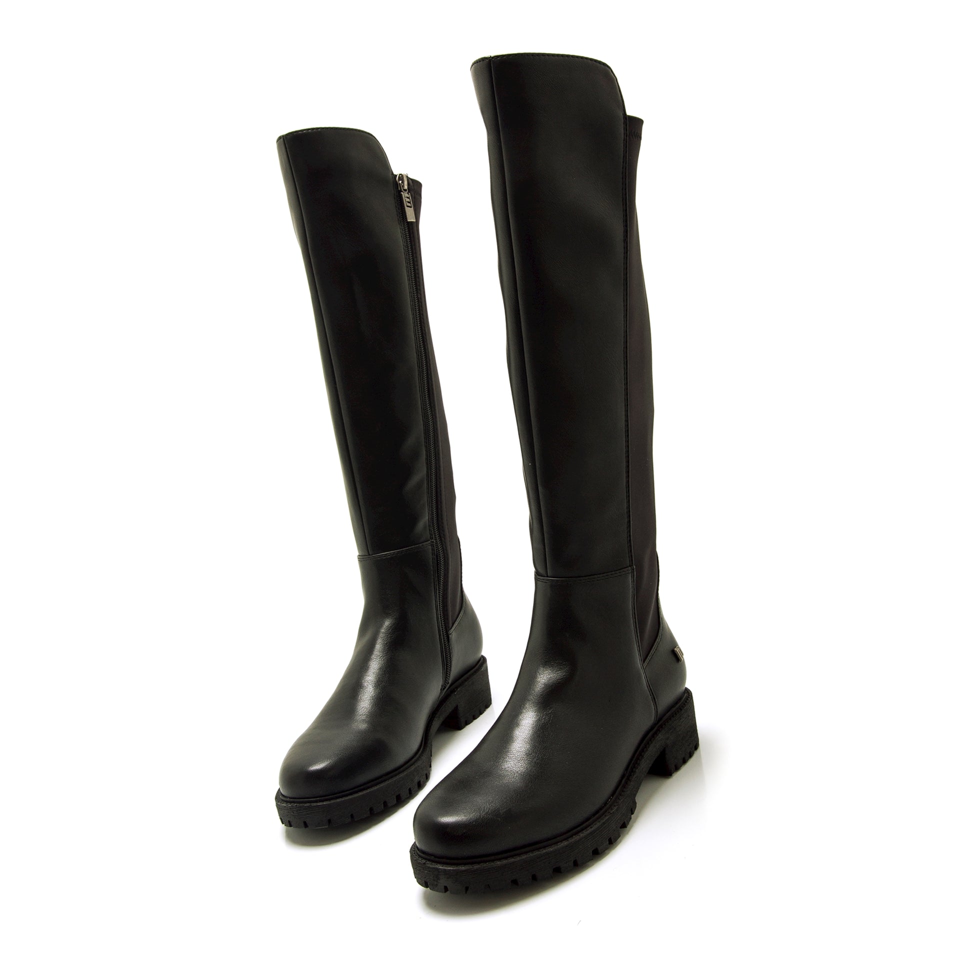 Bota alta Campa Mustang para mujer. De estilo biker de color negro, incluye cierre de cremallera en el lateral de la caña. Tachuela con el logo de la marca en la parte inferior de la bota. Suela dentada. Cómodas y ligeras, se convertirán en un básico indispensable de esta temporada.