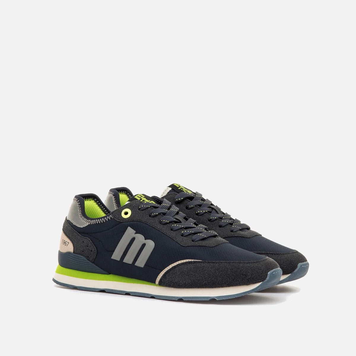 Zapatillas de color verde kaki para hombre de Mustang, modelo Joggo Classic de estilo urbano. Este diseño combina paneles y texturas en tonos tierra con detalles de color azul y amarillo que aportan un toque distintivo. Incluye el logo lateral en relieve, talón con refuerzo y suela bicolor con base de goma. Su silueta clásica tipo running junto a sus plantillas con tecnología Starfit, lo convierte en un modelo que asegura comodidad en cada paso.