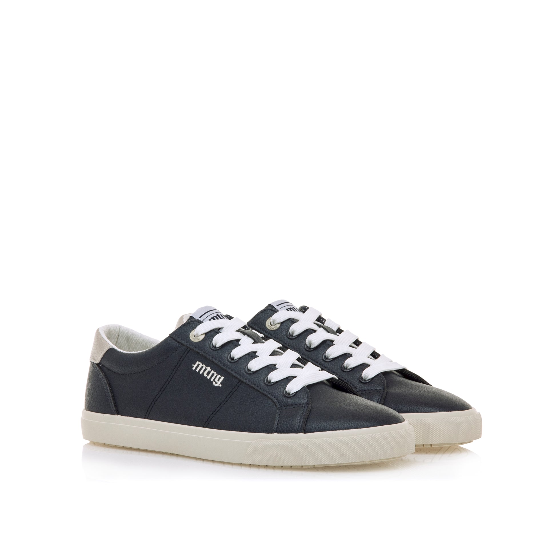 Zapatillas azul marino Aria de hombre, marca Mustang. Este diseño clásico y monocromático cuenta con un cierre de cordones blancos y una suela y parte trasera beige. El logo se encuentra bordado en blanco en la parte lateral. Zapatilla plana ideal para la comodidad del día a día. Conoce Aria de Mustang.