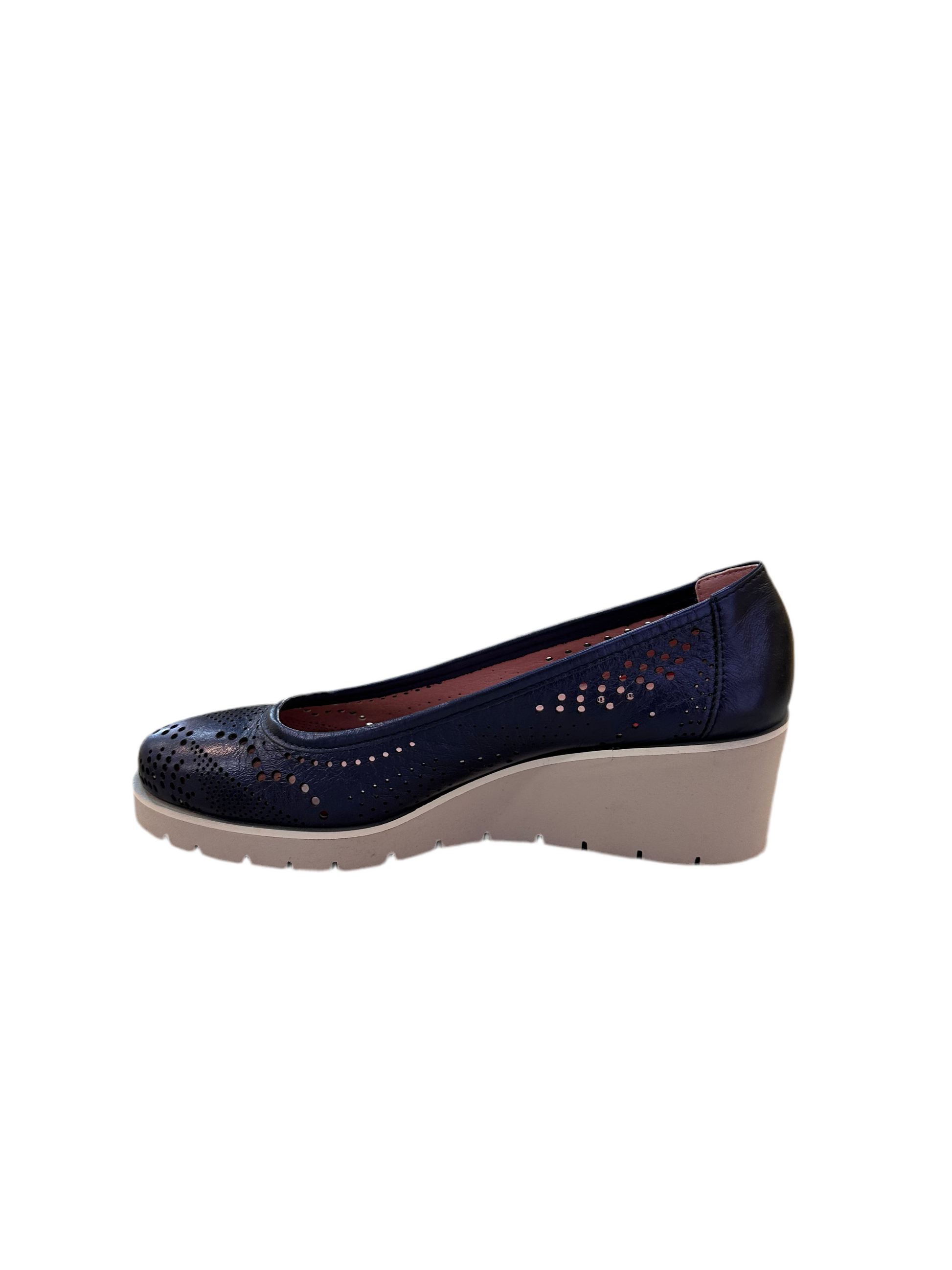 Zapato callaghan (corte de salon) con cuña de 4 en color azul marino y piel troquelada