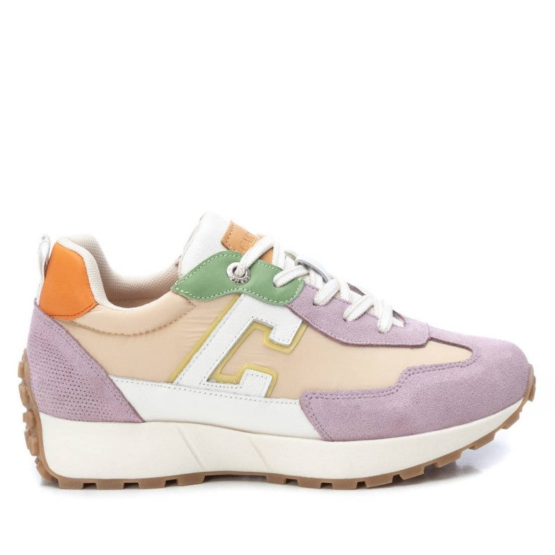 Zapatillas de la marca CARMELA en combinado de varios colores con suela antideslizante y cierre con cordones , fabricadas en piel serraje con tejido , modernas y llamativas para esta temporada de primavera verano .